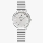 A graceful silver steel watch with a classic white dial, designed to add elegance to every woman’s style.